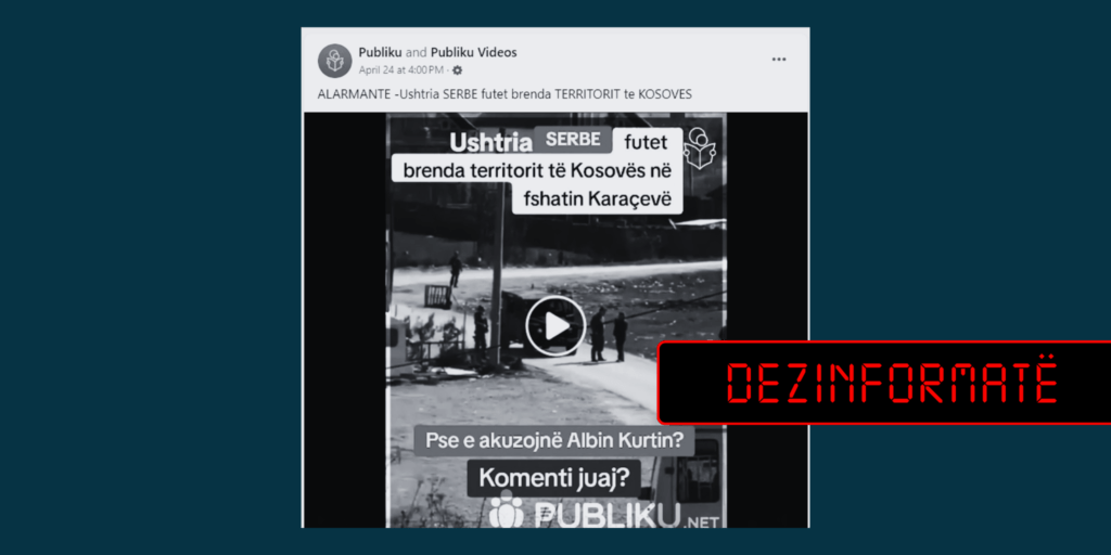 Videoja është postuar nga faqja “Publiku” në Facebook, më 24 prill, me mbishkrimin “Alarmante-Ushtria serbe futet brenda territorit të Kosovës”.