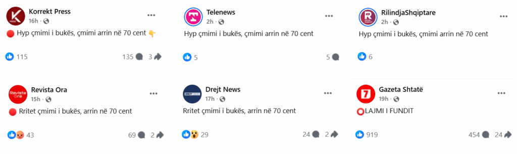 Postimet u publikuan vetëm si fotolajm, pa artikuj, duke mos sqaruar se pretendimi i “BuletiniEkonomik” flet për rritje të çmimit të bukës vetëm për zinxhirin e furrave “Milenium Bakery” në Prishtinë.