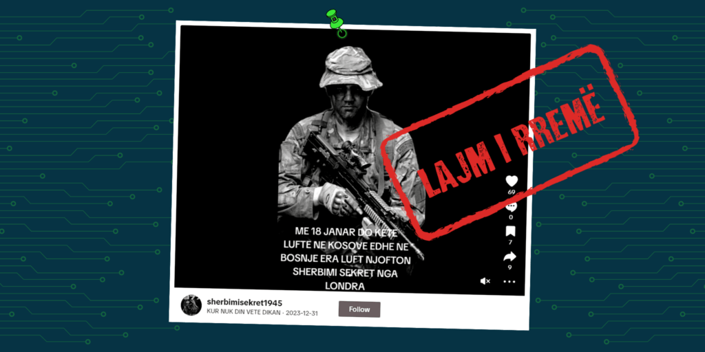 Një llogari në TikTok që mban emrin “sherbimisekret1945” ka publikuar një video-material në TikTok me anë të së cilës, pretendohet se do të ketë luftë në Kosovë dhe në Bosnjë.