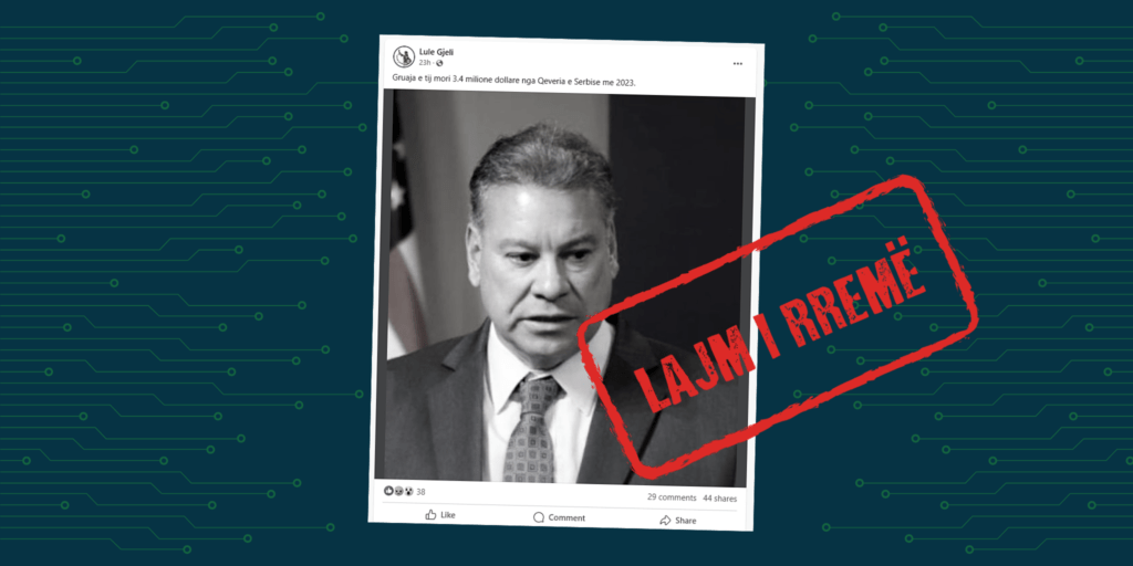 Imazhi përmban mbishkrimin “Gruaja e tij mori 3.4 milione dollare nga Qeveria e Serbise me 2023.”.