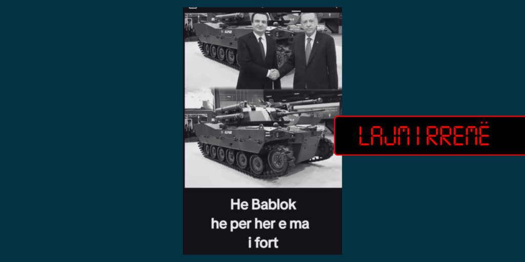 Publikohet një video-material që shfaq fotografinë nga takimi ndërmjet kryeministrit të Kosovës, Albin Kurti me presidentin turk, Recep Taip Erdogan Recep Tayyip Erdoğan, me pretendimin që lë të nënkuptohet se është arritur marrëveshje për sigurimin e tankeve të shfaqur në fotografi.