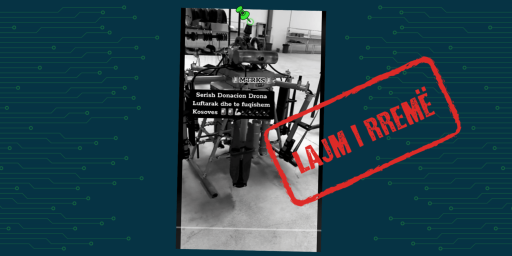 Mbishkrimi i vendosur video-materialit pretendon se ky dron ushtarak do t’i dhurohet Kosovës, pa e saktësuar burimin e këtyrë donacioneve.