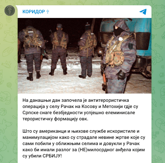 Ky postim u publikua nga kanali në gjuhën serbe në Telegram që mban emrin “КОРИДОР” (KORIDOR).