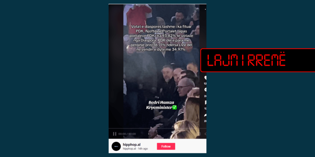 Publikohet një video-material me mbishkrimin që pretendon se portalet kanë raportuar se nga votat e mërgatës, Partia Demokratike e Kosovës (PDK) ka marrë 93.82% të votave.
