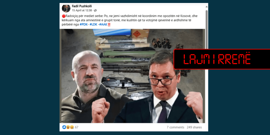 Postimi me këtë pretendim është publikuar më 15 prill në llogarinë në Facebook të Fadil Pushkollit, kryeredaktor në mediumin “KosovaPost.net”.