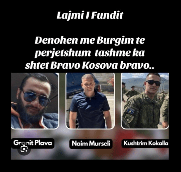 “Lajmi I Fundit. Denohen me Burgim te perjetshum tashmë ka shtet Bravo Kosova bravo..”, shkruan në videon e publikuar nga llogaria “pograddeccii”. Nën shkrim janë fotografitë e tre personave në fjalë.