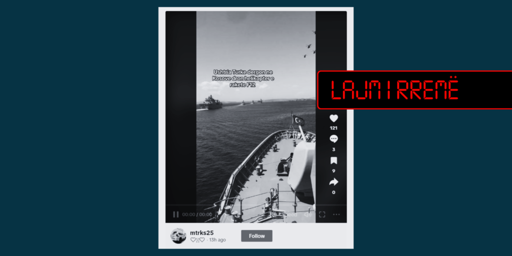 Përmes këtij video-materiali pretendohet rrejshëm se “ushtria turke po dërgon dron, helikopter dhe raketë F12 në Kosovë”.