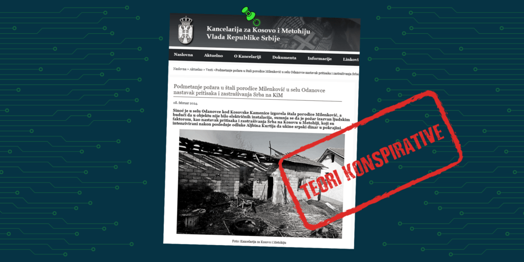 Zyra për Kosovën në Qeverinë e Serbisë ka pretenduar pa fakte se djegia e stallës së familjes Millenkoviq në Hodanoc të Kamenicës, është vazhdimësi e presionit dhe frikësimit të serbëve në Kosovë.