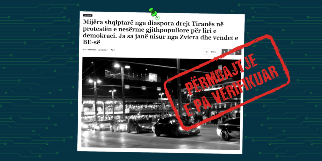 Të fundit | Paralajmërimi “Mos planifikoni udhëtime me aeroplan për në Evropë” është i… Të fundit | Perspektivat nordike për luftimin e dezinformimit dhe forcimin e reziliencë… Të fundit | Autoritetet e rreme publike të gjeneruara me AI si formë e re e çrregullimi… Të fundit | Pretendim i rremë për shembje ndërtese, përmbajtja tregon tjetër ngjarje Të fundit | Si (s’)erdhën Marco Rubio dhe Ivanka Trump në Shqipëri Të fundit | Mediat në serbisht e paraqesin viktimën kosovare në Austri si shtetas të Se… Të fundit | Pretendohet pa fakte se Policia e Kosovës rrahu fëmijë serbë në Jarinjë Të fundit | Raporti monitorues i keqinformimit për muajin mars 2026 Të fundit | Pretendohet pa fakte për rritje 40% të çmimit të ujit të ambalazhuar Të fundit | Rishikimi i javës: Pretendime për konfiskimin e pronave të Vjosa Osmanit dh…