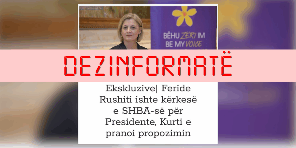 Pretendimi se Feride Rushiti u propozua si kandidate për presidente pas “kërkesës s SHBA-së” është publikuar nga një ueb-faqe me mungesë transparence dhe besueshmëri të dyshimtë, pa u mbështetur nga asnjë media kredibile.