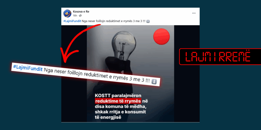 Pretendimi nga faqja “Kosova e Re” në Facebook për nisjen e reduktimeve të rrymës “3 me 3” nga 19 dhjetori është i pavërtetë.