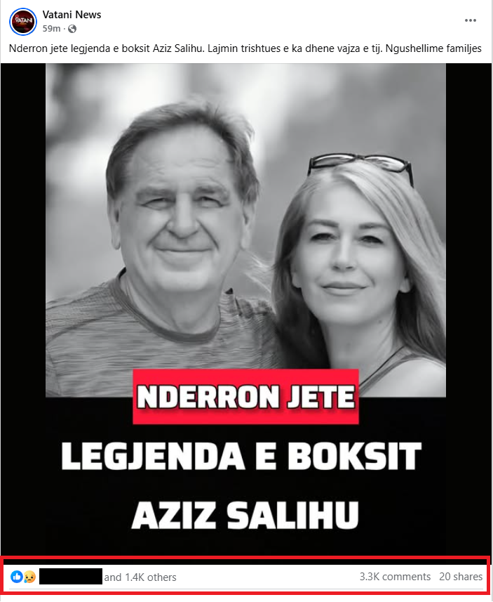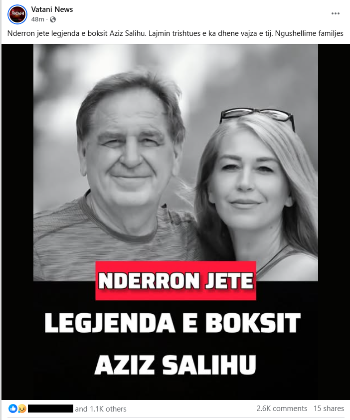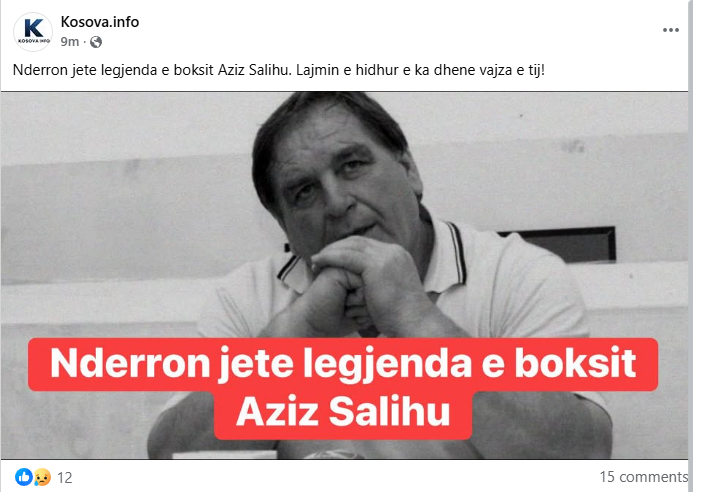 Më 11 gusht, në Facebook është publikuar një pretendim i rremë se ish-boksieri kosovar Aziz Salihu ka vdekur. Lajmi u shpërnda fillimisht nga faqja “Vatani News” dhe më pas edhe nga “kosova.info”.