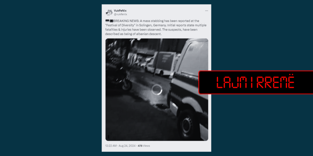 Përmes një postimi të publikuar në platformën X, u pretendua se për sulmin me thikë që ndodhi në një festival në Gjermani, të dyshuarit janë me origjinë shqiptare.