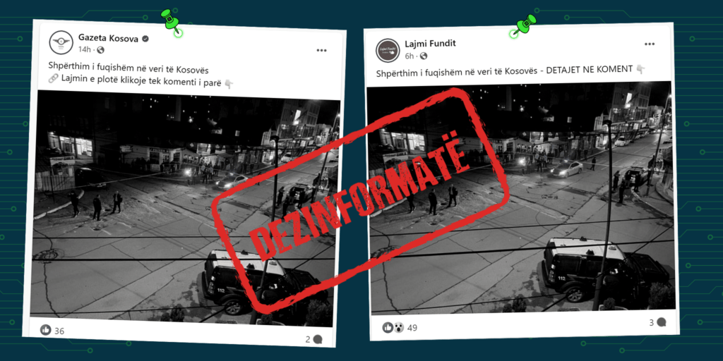 Të fundit | Paralajmërimi “Mos planifikoni udhëtime me aeroplan për në Evropë” është i… Të fundit | Perspektivat nordike për luftimin e dezinformimit dhe forcimin e reziliencë… Të fundit | Autoritetet e rreme publike të gjeneruara me AI si formë e re e çrregullimi… Të fundit | Pretendim i rremë për shembje ndërtese, përmbajtja tregon tjetër ngjarje Të fundit | Si (s’)erdhën Marco Rubio dhe Ivanka Trump në Shqipëri Të fundit | Mediat në serbisht e paraqesin viktimën kosovare në Austri si shtetas të Se… Të fundit | Pretendohet pa fakte se Policia e Kosovës rrahu fëmijë serbë në Jarinjë Të fundit | Raporti monitorues i keqinformimit për muajin mars 2026 Të fundit | Pretendohet pa fakte për rritje 40% të çmimit të ujit të ambalazhuar Të fundit | Rishikimi i javës: Pretendime për konfiskimin e pronave të Vjosa Osmanit dh…