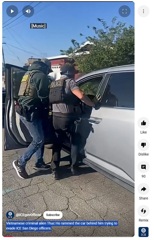 Krimineli vietnamez Thuc Ho përplasi makinën pas tij duke u përpjekur t’i shmangej oficerëve të ICE në San Diego.