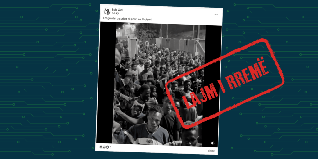 Me anë të këtij video-materiali, kjo llogari ka pretenduar rrejshëm se pamjet paraqesin emigrantët që pritet të vijnë në Shqipëri.