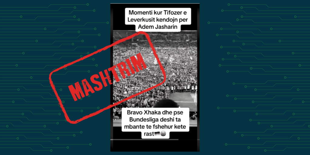 Videoja me mbishkrimin dhe audion që pretendon se tifozët e klubit gjerman të futbollit, Bayer Leverkusen kanë kënduar këngën “Mora fjalë”, gjatë festimit të titullit kampion, nuk është e vërtetë.