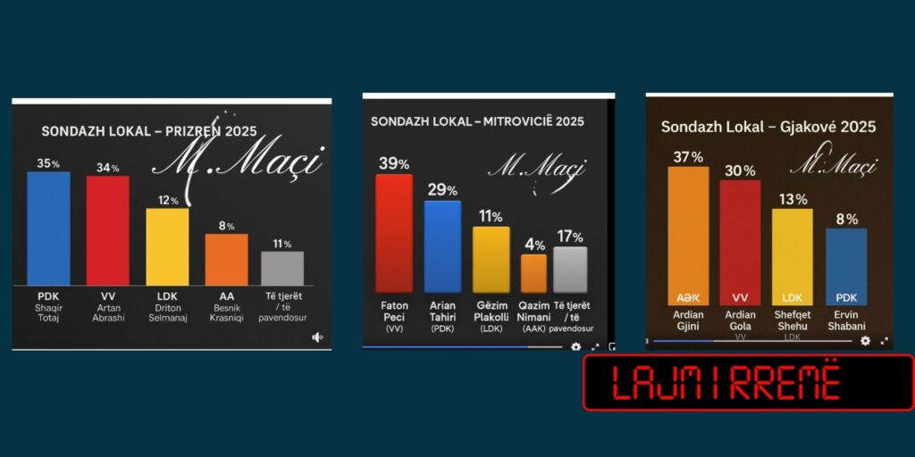 Të dielën, më 12 tetor 2025, profili në Facebook “Murat Maci” ka publikuar tri të ashtuquajtura sondazhe për garat lokale në Prizren, Gjakovë dhe Mitrovicë.
