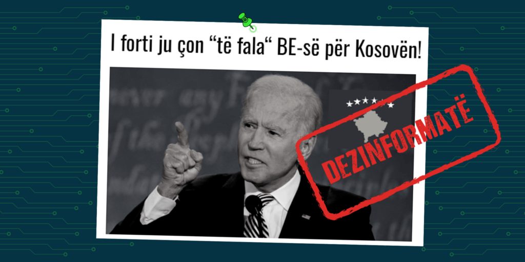 Një portal i dyshimtë ka publikuar një artikull me titull “I forti ju çon “të fala“ BE-së për Kosovën”, duke i bashkangjitur imazhin e presidentit amerikan Joe Biden.