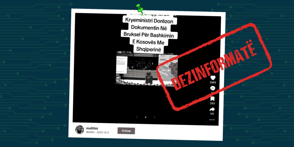 Llogaria në TikTok që mban emrin “mulitini” ka publikuar një video-material (5 dhjetor), me mbishkrimin ku pretendohet se një kryeministër ka dorëzuar një dokument në Bruksel për bashkimin e Kosovës me Shqipërinë.