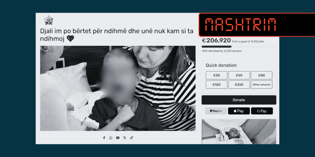 Duke përdorur videon e një fëmije, u pretendua rrejshëm se i njëjti vuan nga një sëmundje dhe se është hapur donacion për të dhuruar para për shërimin e tij.
