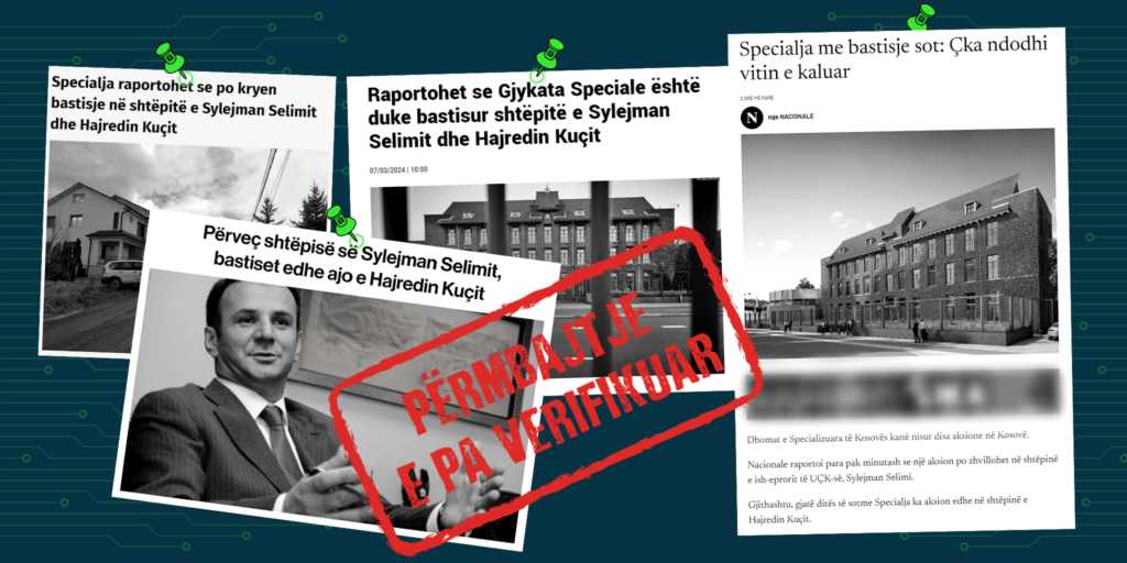 Në këto raportime, u tha se një aksion po zhvillohet në shtëpinë e ish-eprorit të UÇK-së, Sylejman Selimi, dhe atë të ish-ministri të Drejtësisë, Hajredin Kuçit.