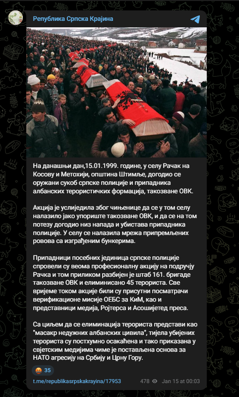 Hibrid.info, çështjen e Masakrës së Reçakut dhe narrativit serb dhe atij rus mbi të, e ka trajtuar edhe në të kaluarën – KËTUKËTU).