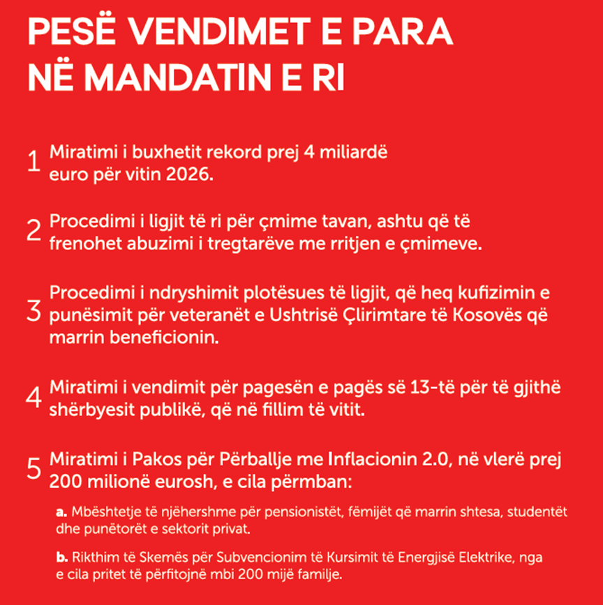 - Miratimi i buxhetit rekord prej 4 miliardë euro për vitin 2026.