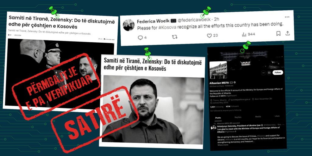 Disa portale në gjuhën shqipe kanë publikuar dje (28 shkurt) një artikull me titull “​Samiti në Tiranë, Zelensky: Do të diskutojmë edhe për çështjen e Kosovës”.