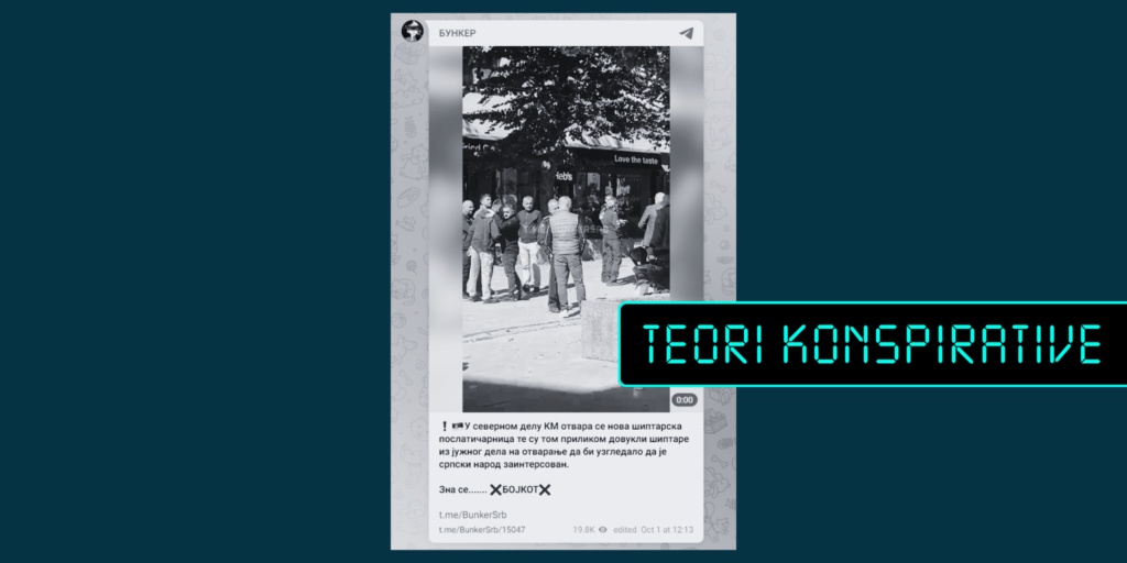 Tutje, mbishkrimi vijon me pretendimin se, me anë të këtyre pamjeve po tentohet të përhapen narracione se qytetarët serbë të veriut po i frekuentojnë këto biznese.