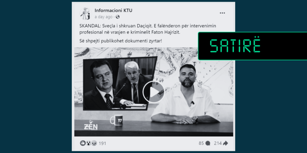 Një faqe në Facebook ka publikuar pjesë të një emisioni parodik/humoristik, duke e paraqitur atë si diçka të vërtetë.