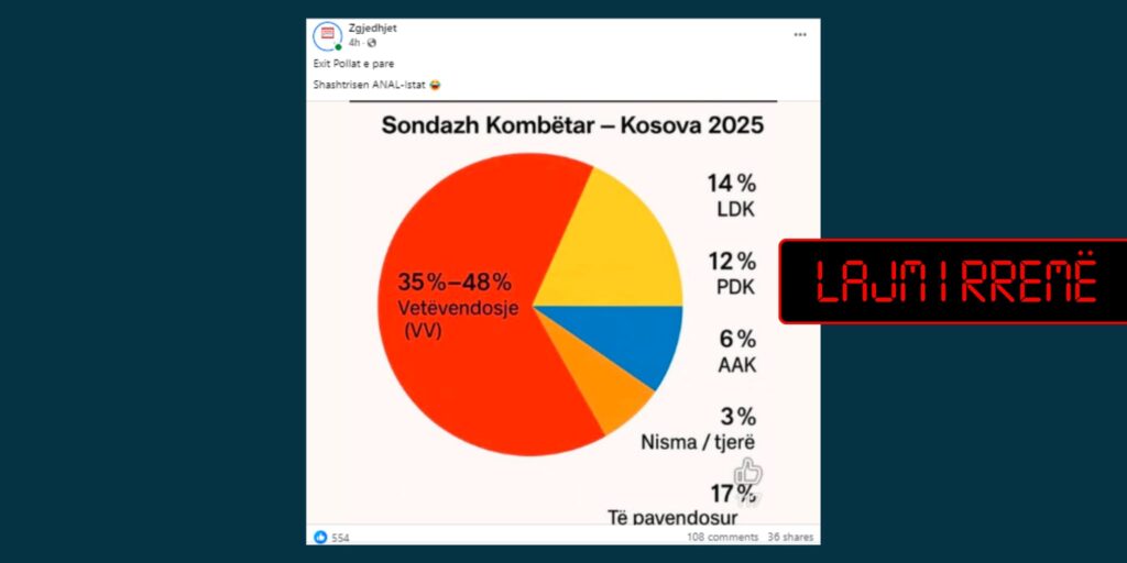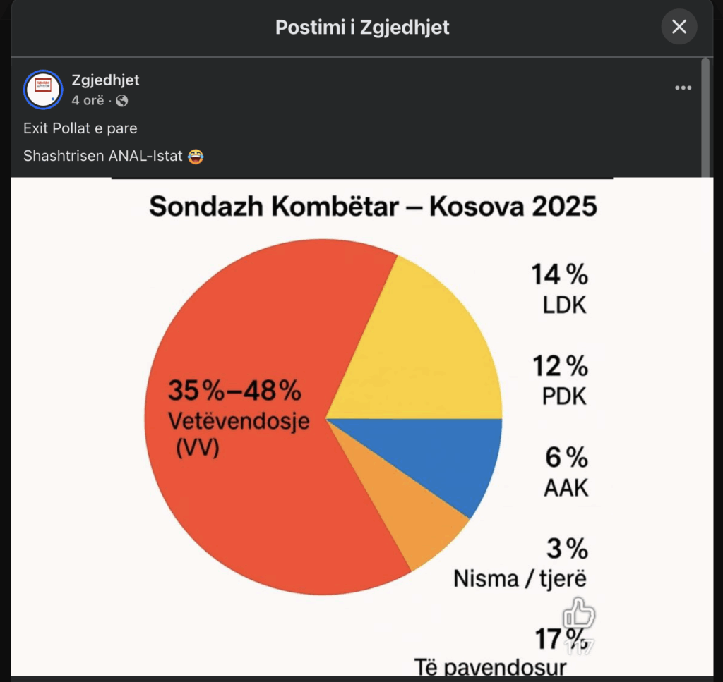 Publikohet një fotografi që paraqet mbështetjen qytetare për subjektet politike në Kosovë me mbishkrimin që pretendon se paraqet matje në nivelin kombëtar.