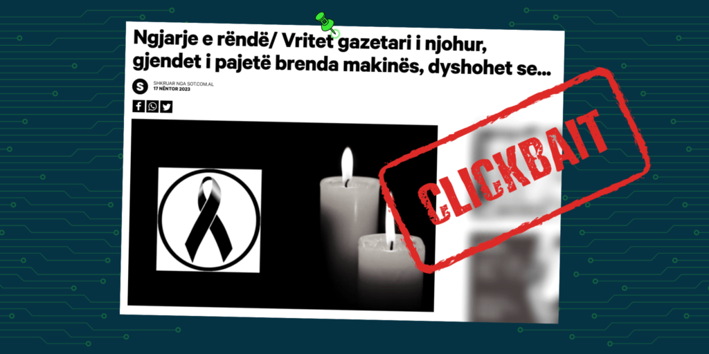 Portali informativ në gjuhën shqipe që mban emrin “sot.com.al” ka publikuar sot (17 nëntor) një artikull me titull “Ngjarje e rëndë/ Vritet gazetari i njohur, gjendet i pajetë brenda makinës, dyshohet se…”.