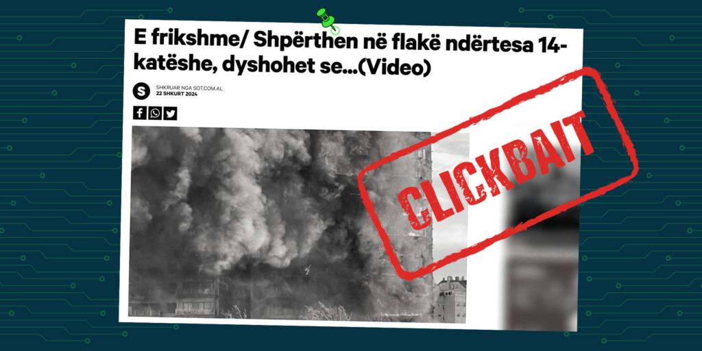 Të fundit | Paralajmërimi “Mos planifikoni udhëtime me aeroplan për në Evropë” është i… Të fundit | Perspektivat nordike për luftimin e dezinformimit dhe forcimin e reziliencë… Të fundit | Autoritetet e rreme publike të gjeneruara me AI si formë e re e çrregullimi… Të fundit | Pretendim i rremë për shembje ndërtese, përmbajtja tregon tjetër ngjarje Të fundit | Si (s’)erdhën Marco Rubio dhe Ivanka Trump në Shqipëri Të fundit | Mediat në serbisht e paraqesin viktimën kosovare në Austri si shtetas të Se… Të fundit | Pretendohet pa fakte se Policia e Kosovës rrahu fëmijë serbë në Jarinjë Të fundit | Raporti monitorues i keqinformimit për muajin mars 2026 Të fundit | Pretendohet pa fakte për rritje 40% të çmimit të ujit të ambalazhuar Të fundit | Rishikimi i javës: Pretendime për konfiskimin e pronave të Vjosa Osmanit dh…