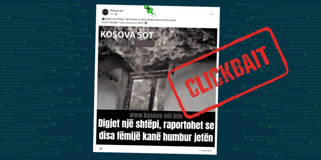 Portali informativ “Kosova-sot.info” në profilin e saj zyrtar në median sociale Facebook, ka publikuar një përmbajtje ku thuhet “Digjet një shtëpi, raportohet se disa fëmijë kanë humbur jetën”.
