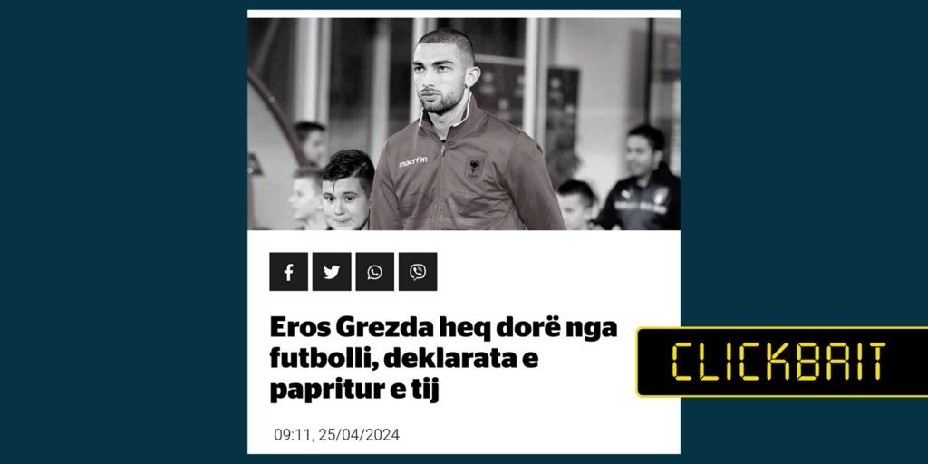 Përmes titujve pretendohet pa saktë se futbollisti Eros Grezda është tërhequr nga futbolli.