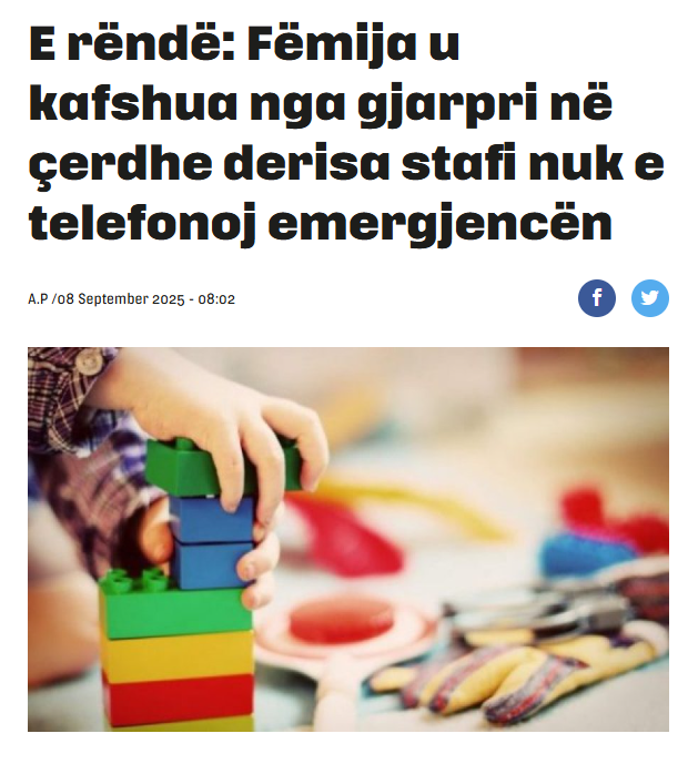 Media online “Kosova Sot” ka publikuar një artikull me titullin “E rëndë: Fëmija u kafshua nga gjarpri në çerdhe derisa stafi nuk e telefonoj emergjencën”.