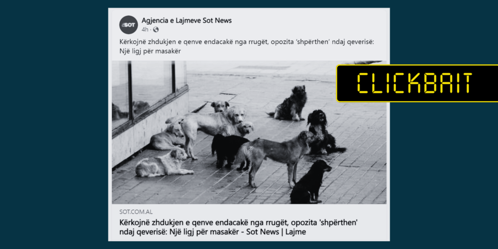 I njëjti është titulluar “Kërkojnë zhdukjen e qenve endacakë nga rrugët, opozita ‘shpërthen’ ndaj qeverisë: Një ligj për masakër”.