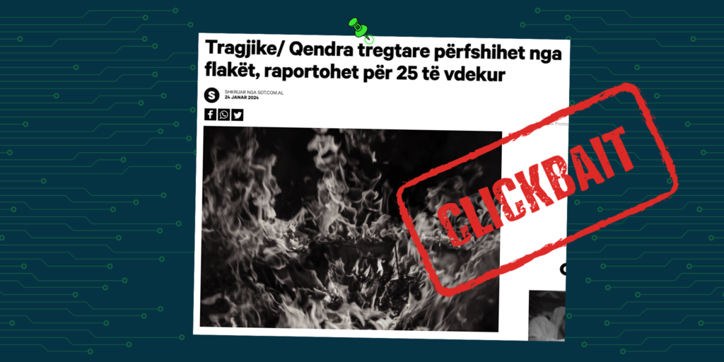 Një portal informativ me përmbajtje në gjuhën shqipe, ka publikuar një artikull me titull “Tragjike/ Qendra tregtare përfshihet nga flakët, raportohet për 25 të vdekur”.