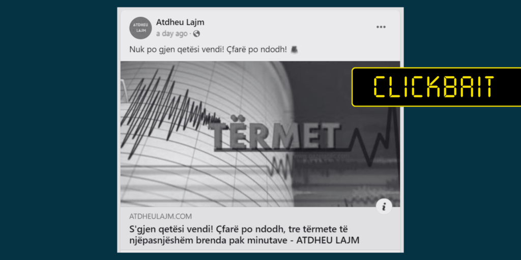 Portali i dyshimtë me përmbajtje në gjuhën shqipe “atdheulajm.com” ka publikuar një artikull në lidhje me tërmetet e regjistruara në Greqi, pa treguar në titull se në cilin vend ka ndodhur ngjarja.