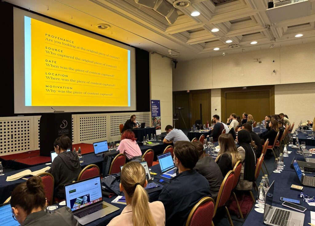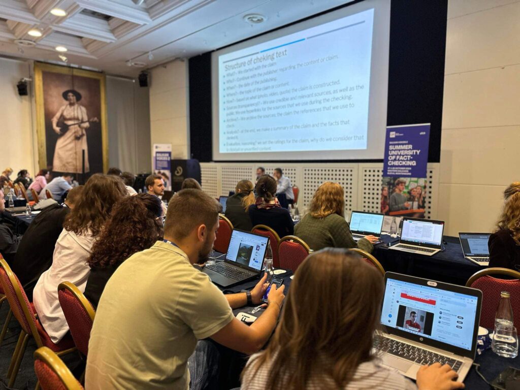 Në këtë aktivitet morën pjesë studentë dhe gazetarë nga vende të ndryshme të rajonit, të cilët u angazhuan në diskutime mbi praktikat e verifikimit të informacionit dhe sfidat e dezinformimit në hapësirën mediatike.