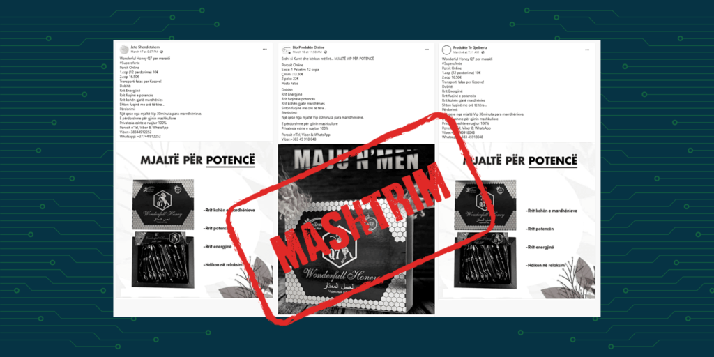 Në përmbajtje të këtyre postimeve nuk sqarohet se ky produkt përmban përbërësin “sildenafil” (i përdorur për trajtimin e mosfunksionimit erektil).