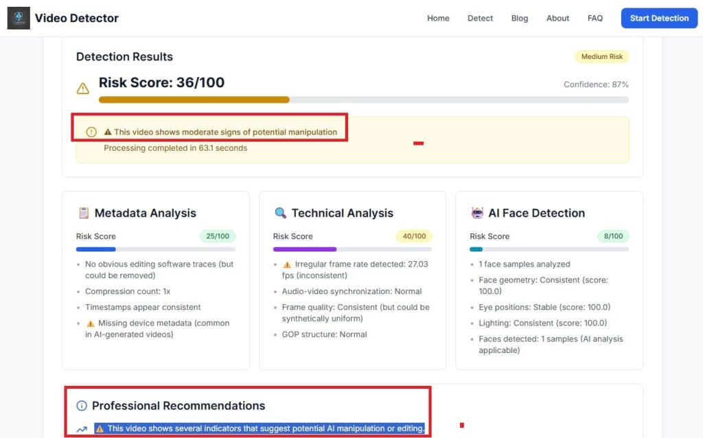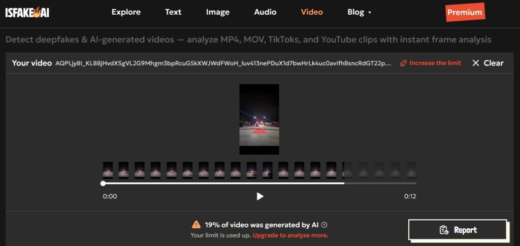Hibrid.info ka kontrolluar video-materialin në fjalë përmes platformave si “isfake.ai” dhe “aivideodetector.org”, të cilat shërbejnë për verifikim të përmbajtjeve, duke treguar nëse ato janë të gjeneruara nga inteligjenca artificiale (IA).