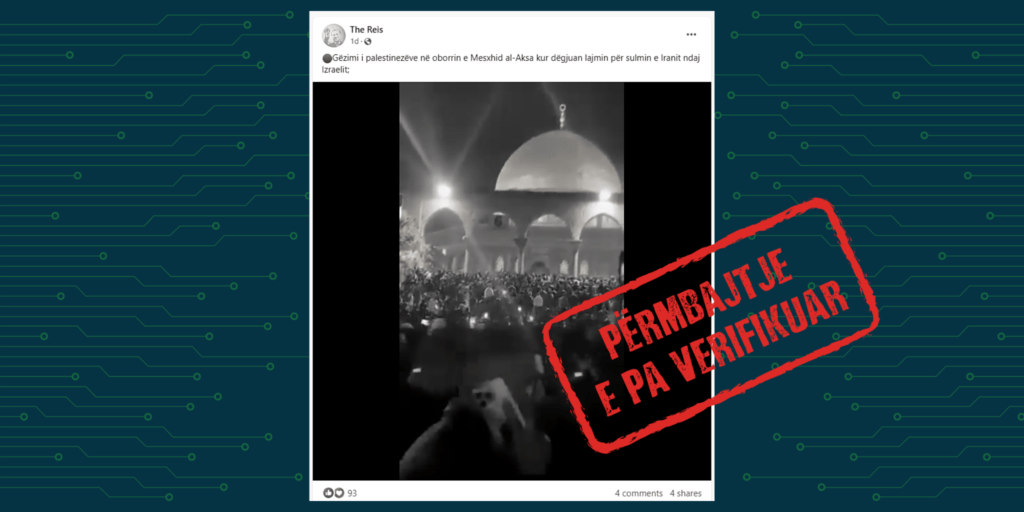 Faqja në Facebook me përmbajtje në gjuhën shqipe “The Reis”, ka publikuar një video-material në mbishkrimin e së cilës thuhet “Gëzimi i palestinezëve në oborrin e Mesxhid al-Aksa kur dëgjuan lajmin për sulmin e Iranit ndaj Izraelit”.