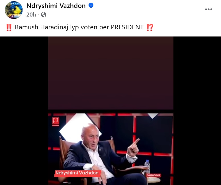 Nëpërmjet një publikimi në Facebook, është pretenduar se kryetari i Aleancës për Ardhmërinë e Kosovës (AAK), Ramush Haradinaj, është duke kërkuar votë për t’u bërë president.
