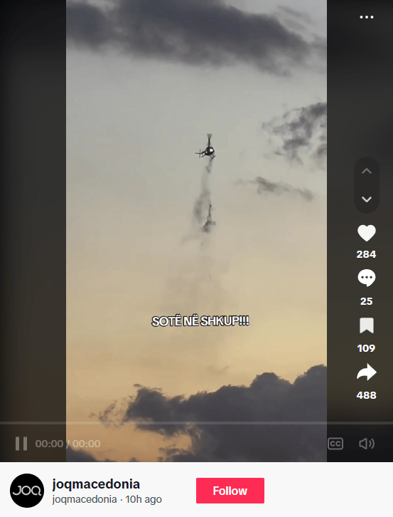 Një video që paraqet një helikopter duke hedhur një material në formë pluhuri, po pretendohet se është realizuar në kryeqytetin e Maqedonisë së Veriut, Shkup.