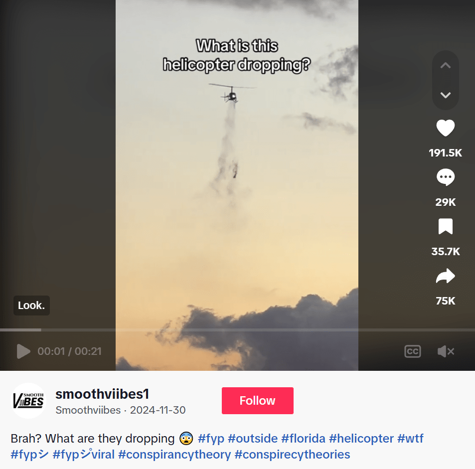 Pas hulumtimit të kryer përmes programit të automatizuar “InVID”, hibrid.info ka gjetur se kjo video për herë të parë është publikuar në TikTok nga llogaria “smoothviibes1” me datë 30 nëntor, 2024 dhe në përshkrimin e saj pretendohet se e njëjta është realizuar në Florida.